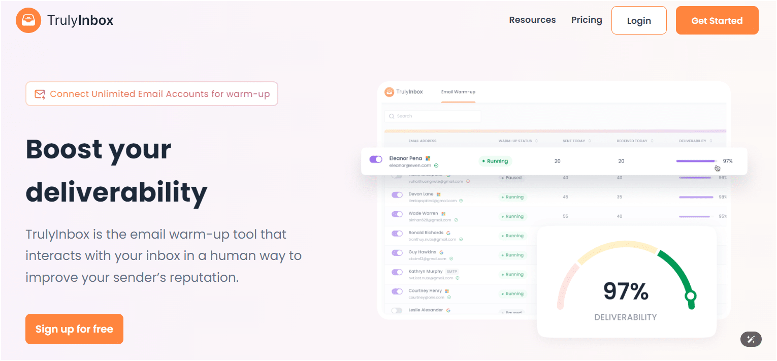 TrulyInbox ist das günstigste Tool zum Aufwärmen von E-Mails, mit dem Sie Ihren Posteingang in nur wenigen einfachen Schritten aufwärmen können. ✅ Sie können auch problemlos mehrere E-Mails gleichzeitig aufwärmen.