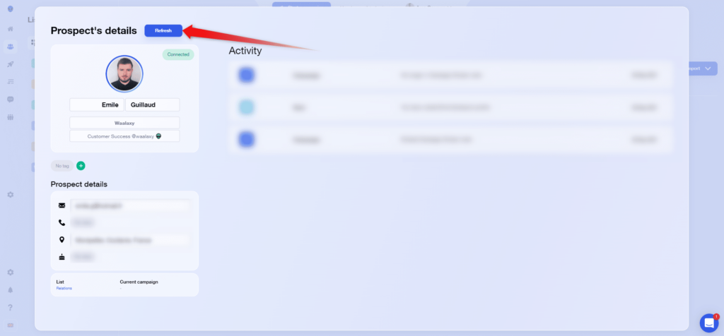 Schritt 2: Ich füge meine Interessenten aus meiner Waalaxy-Liste zu einer neuen Kampagne hinzu.