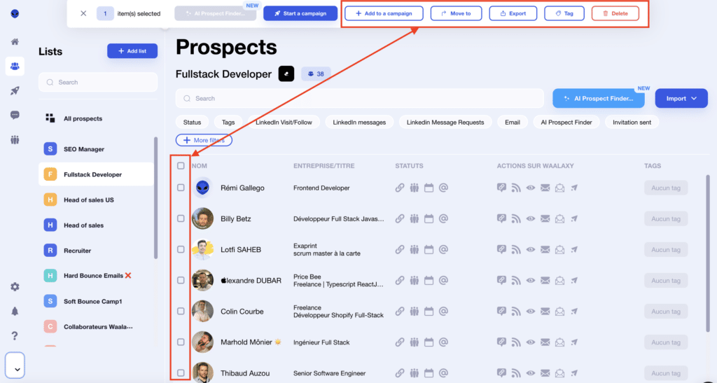 A continuación, vaya a Waalaxy para recuperar la lista de prospectos y vuelva a ordenarla con los filtros de Waalaxy. 🚀